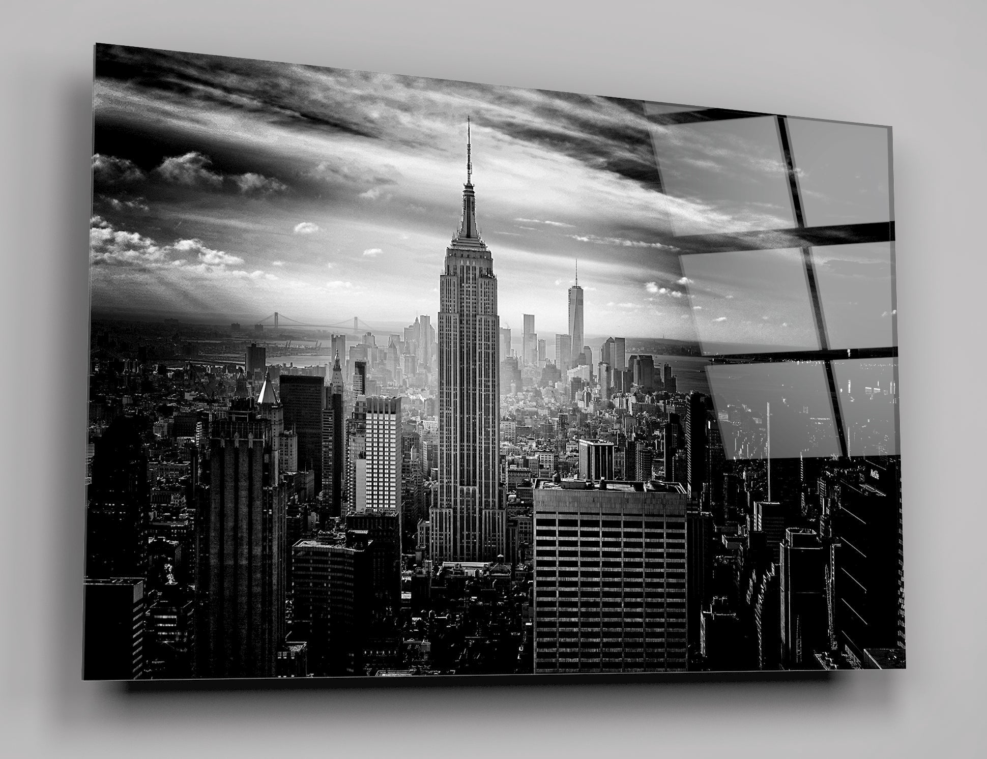 Black and White Empire State Building and Downtown New York City Skyline Acrylic Glass Wall Art