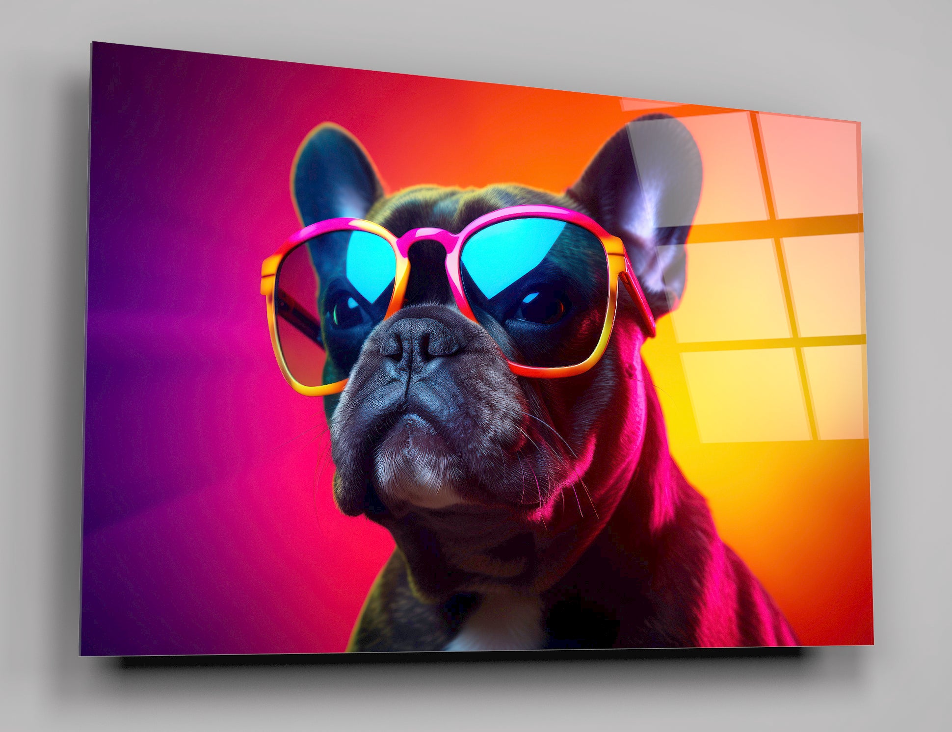Add a touch of personality and charm to your space with our Bulldog Wearing Sunglasses Glass Wall Art. This delightful piece captures the playful spirit of man's best friend, showcasing a bulldog sporting stylish sunglasses.