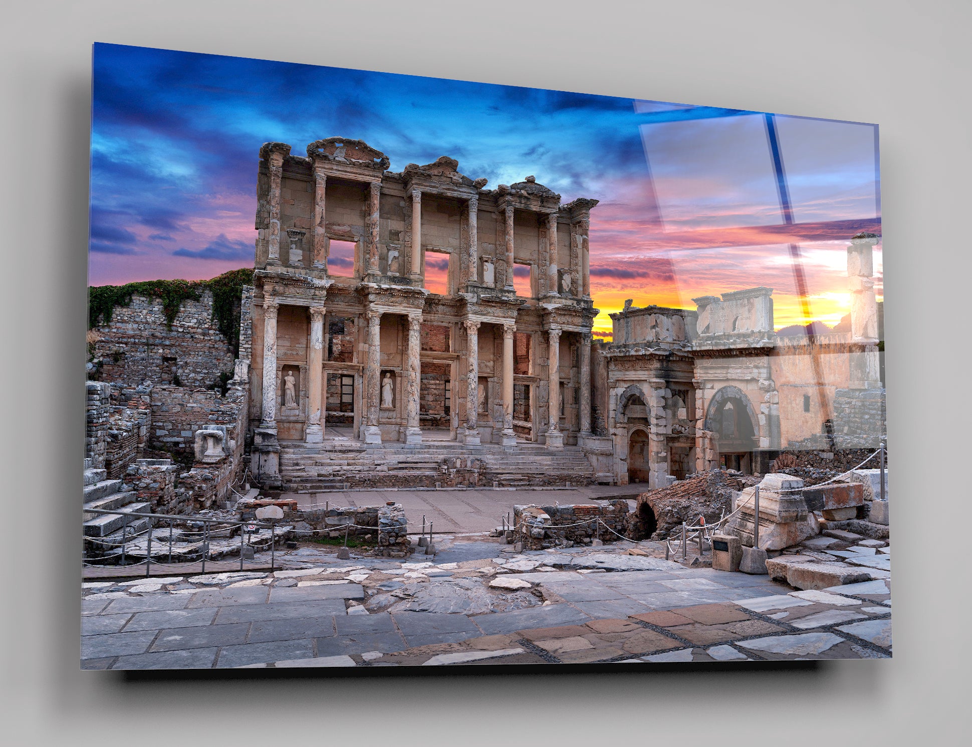 Immerse yourself in the rich history and architectural splendor of our Celsus Library at Ephesus Ancient City, Izmir, Turkey, Glass Wall Art. This magnificent piece pays homage to one of the most iconic landmarks of antiquity, capturing the grandeur and beauty of the ancient world.