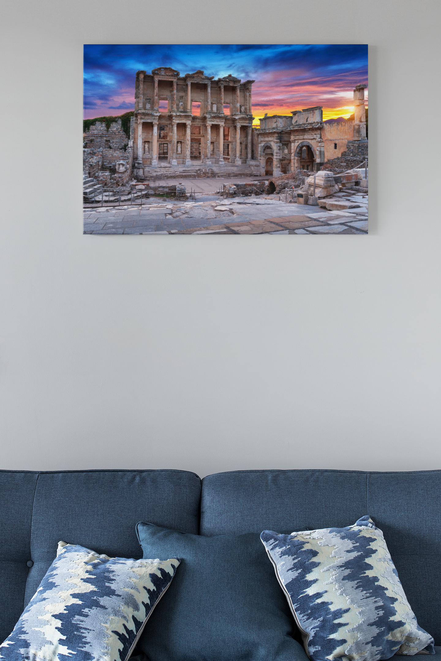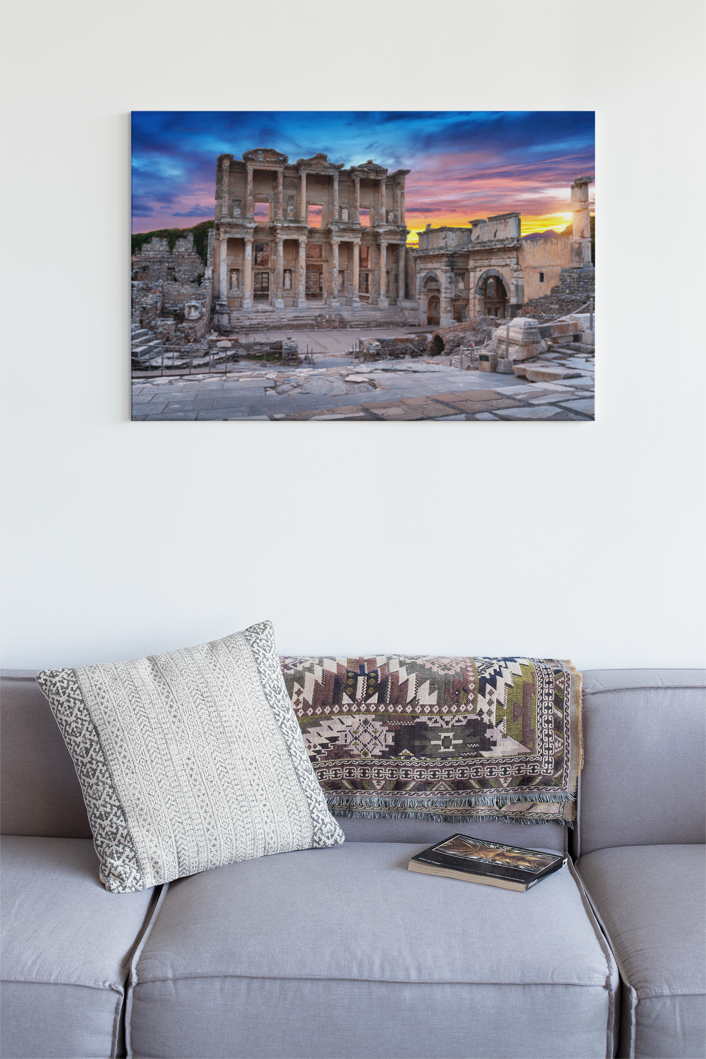 Crafted with meticulous attention to detail, our artwork transports you to the storied streets of Ephesus, where the imposing facade of the Celsus Library stands as a testament to the intellectual legacy of the past. Its majestic columns and intricate architecture evoke a sense of awe and wonder, inviting you to explore the rich history and cultural heritage of Turkey.