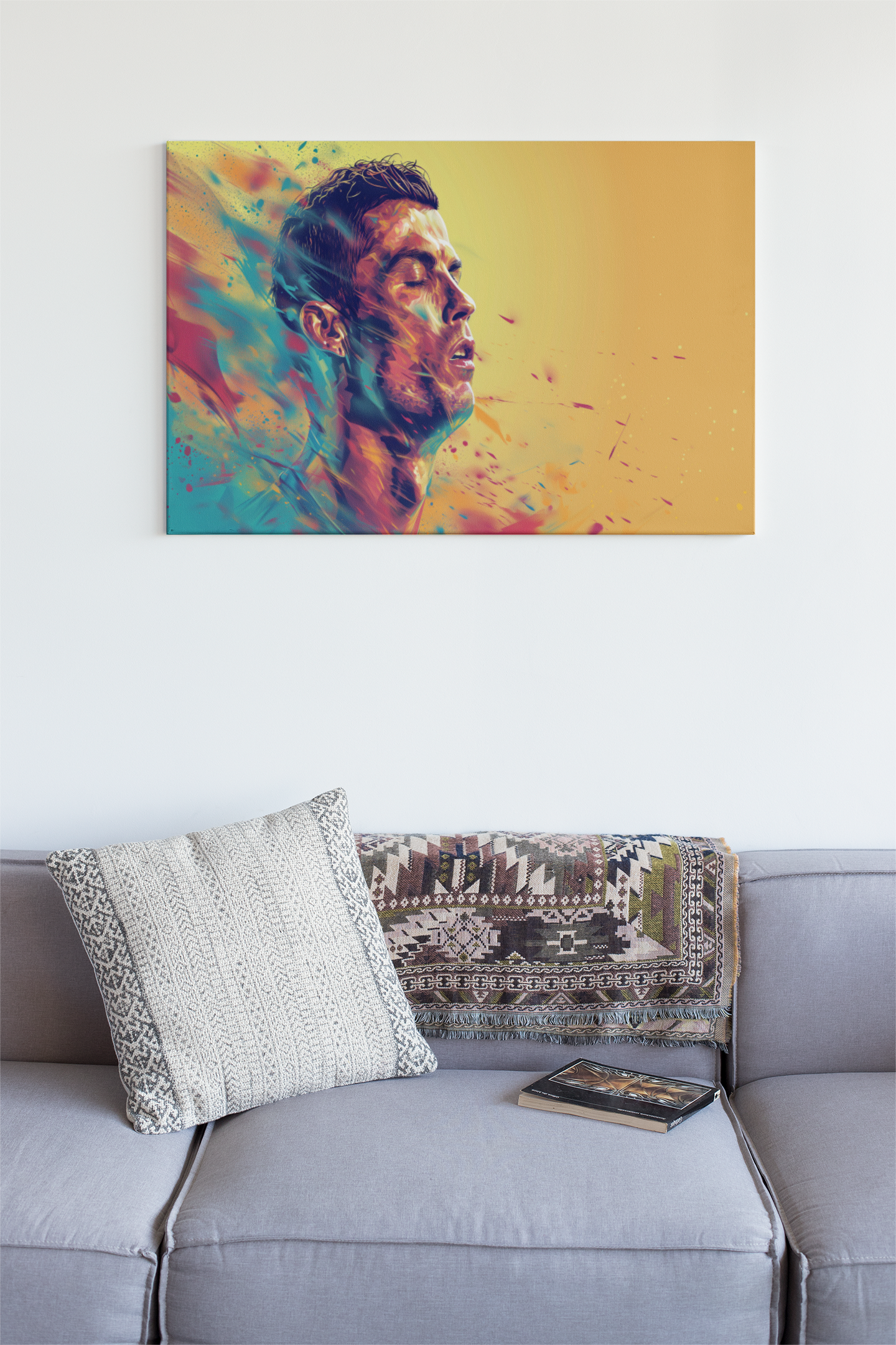 This high-quality print captures the essence of CR7, a true footballing legend and inspiration to athletes worldwide. His electrifying skill and relentless pursuit of excellence are embodied in this dynamic image, ready to ignite your passion for the beautiful game.