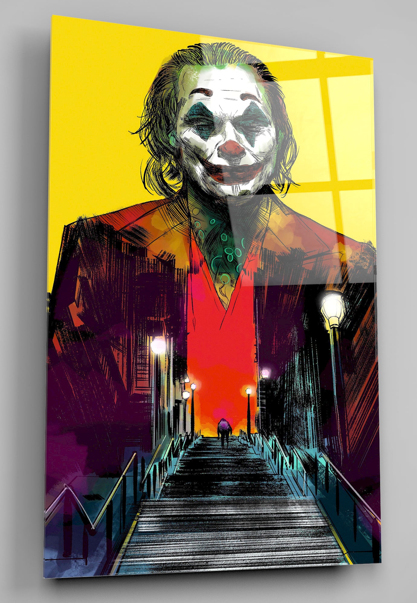 Whether you're looking to enhance your living room wall decor, office wall decor, or movie room decor, this Joaquin Phoenix x Joker glass wall art fits seamlessly into any setting. The contemporary design is also perfect for large wall art displays, bringing a bold statement to your home or office.