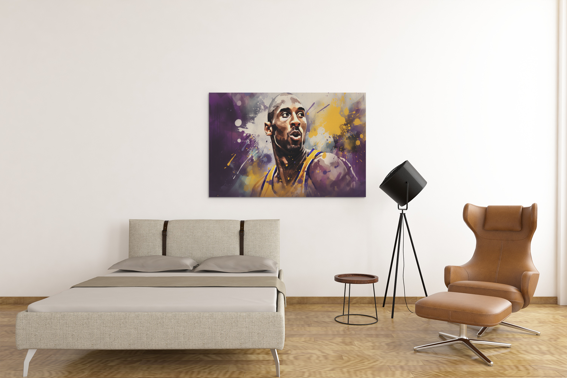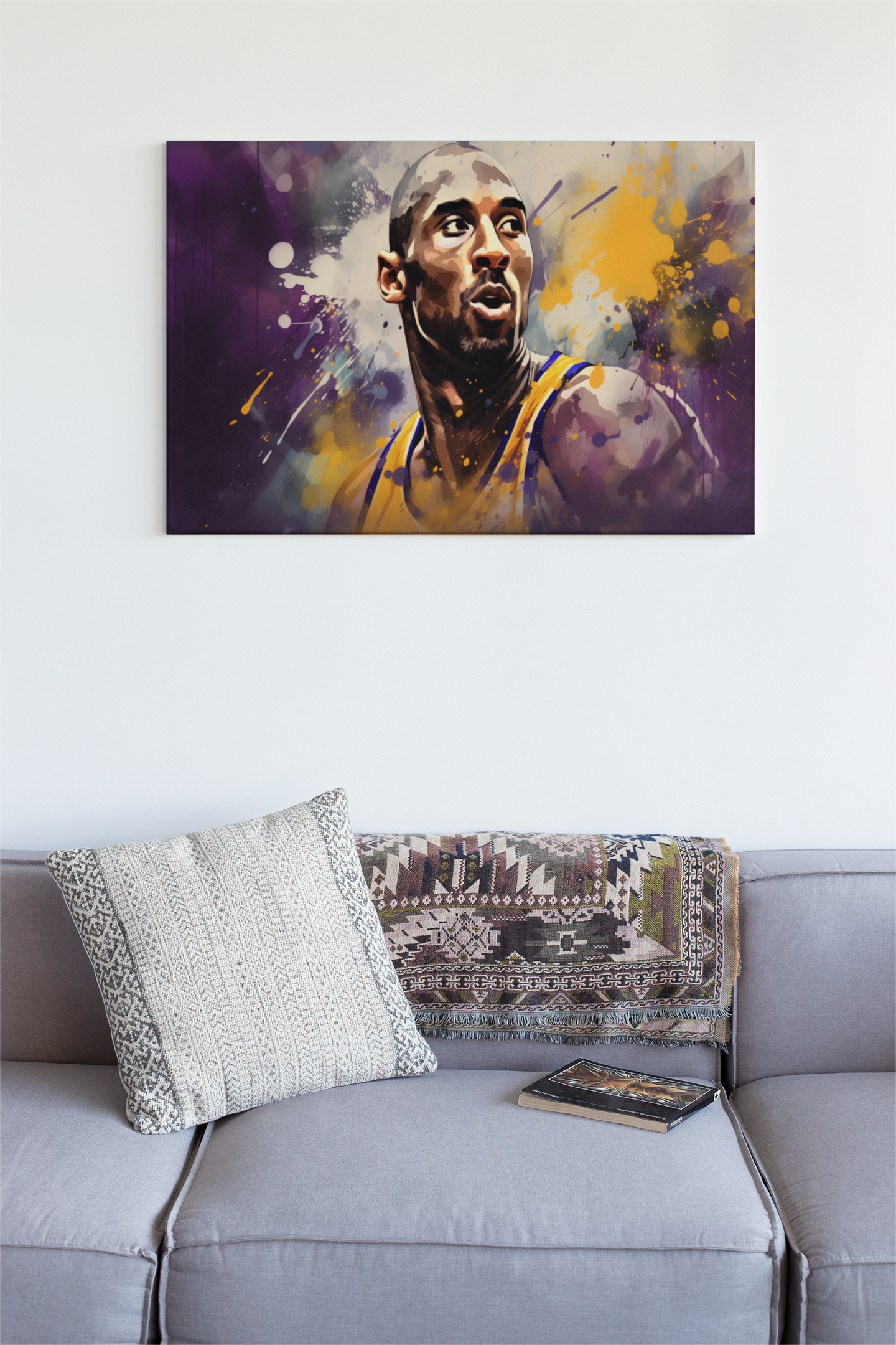 This high-quality print captures the iconic image of Kobe Bryant, a true basketball icon and inspiration to millions. His unwavering dedication and fierce competitive spirit are showcased in this powerful image, ready to motivate you every day.