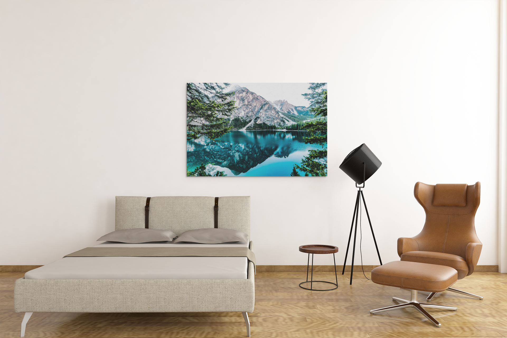 - Superior vibrancy and clarity: Acrylic glass offers exceptional colour reproduction, making the vibrant hues of Lago di Braies truly come alive.