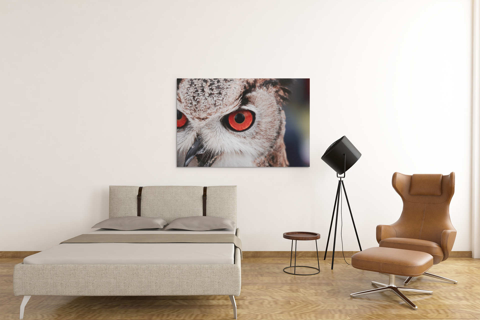 Printed using advanced acrylic printing technology, the crystal-clear finish offers exceptional brightness and contrast, ensuring every detail of the owl’s big eyes and feathers is displayed in stunning clarity. Unlike a traditional pastel or oil painting, this acrylic glass art provides a modern, sleek look that enhances any indoor space.