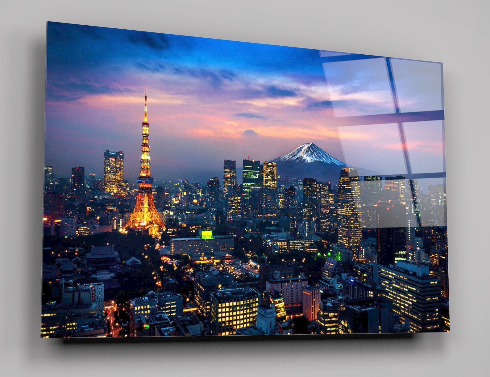 Printed on high-quality glass, our wall art offers exceptional clarity and detail, allowing you to immerse yourself in the vibrant energy of Tokyo's bustling streets and the serene grandeur of Mount Fuji. Whether displayed in your home or office, this piece serves as a captivating focal point that inspires wanderlust and appreciation for the beauty of Japan.