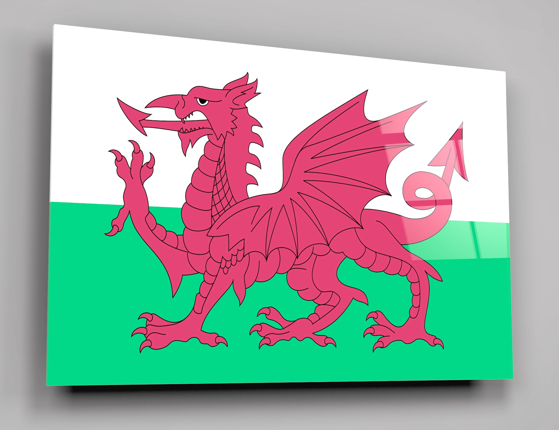Celebrate Welsh pride and heritage with a captivating acrylic glass wall art featuring the iconic Welsh flag. The rich colors of green, red, and white are brought to life on the highgloss acrylic, creating a truly stunning focal point for any room.
